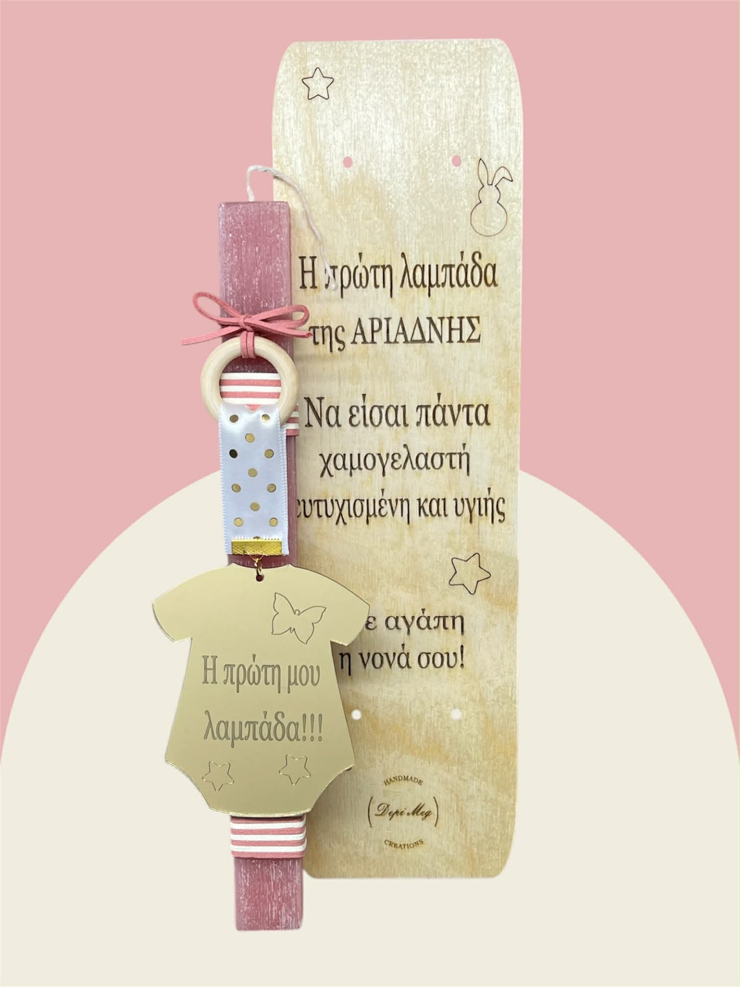 Μια ξεχωριστή χειροποίητη πασχαλινή λαμπάδα αφιερωμένη στο πρώτο Πάσχα της μικρής σας πριγκίπισσας.