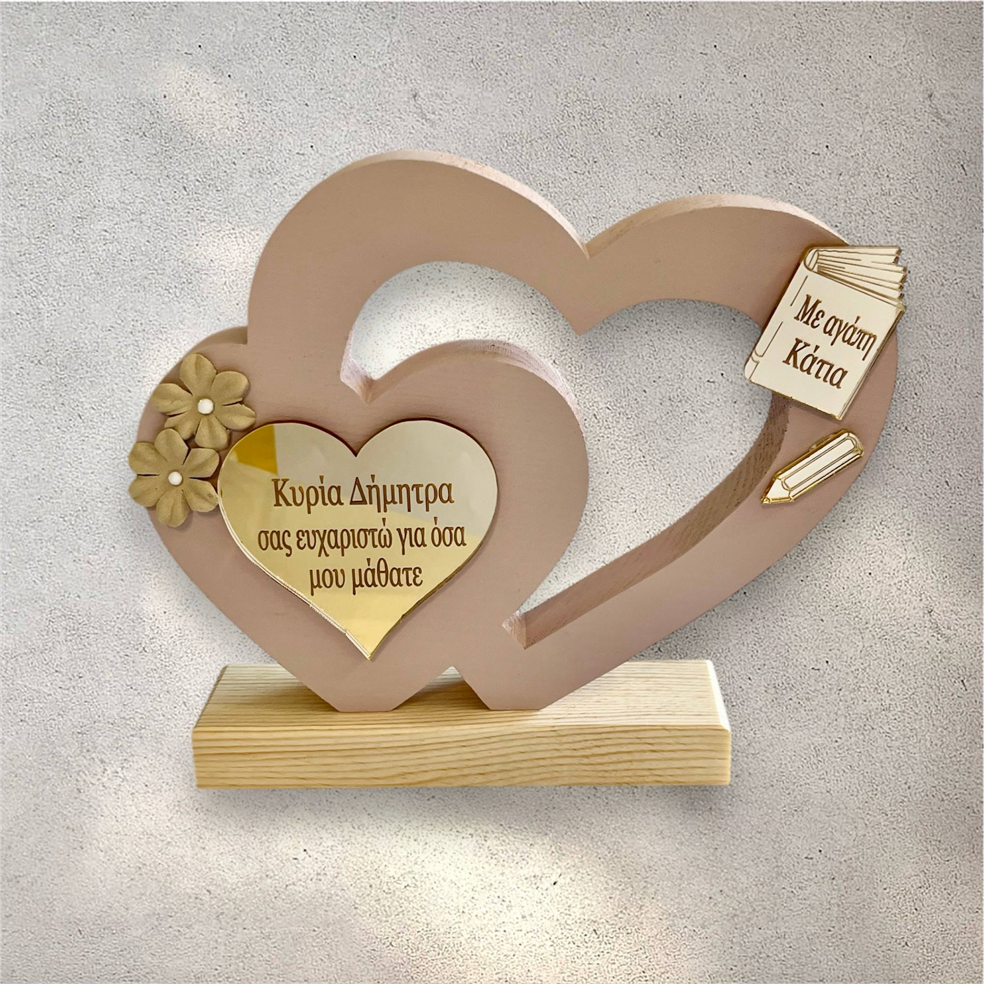 Με αφιέρωση σε χρυσή πλέξιγκλας καρδούλα για την δασκάλα.