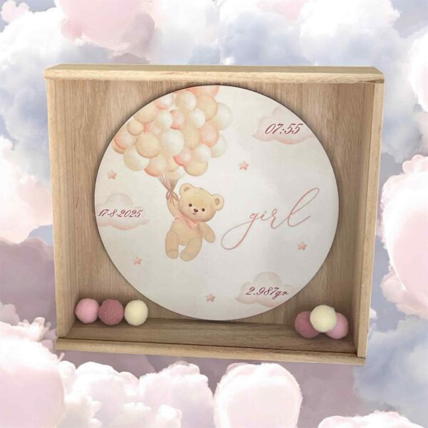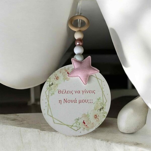 Ένα ξεχωριστό ξύλινο σταντ με έγχρωμη εκτύπωση, φτιαγμένο με αγάπη για να εκφράσει το πιο γλυκό “ευχαριστώ” από το μωρό στην Νονά του.