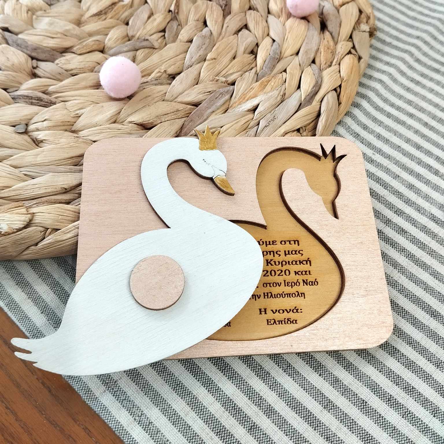 Ξύλινο Προσκλητήριο Παζλ -Κύκνος-