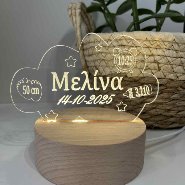 Το φωτιστικό διαθέτει βάση LED. Μπορεί να χρησιμοποιηθεί ως νυχτερινός φωτισμός, διακοσμητικό δωματίου, δώρο γενεθλίων, γιορτής, βάφτισης ή ιδιαίτερες περιστάσεις.